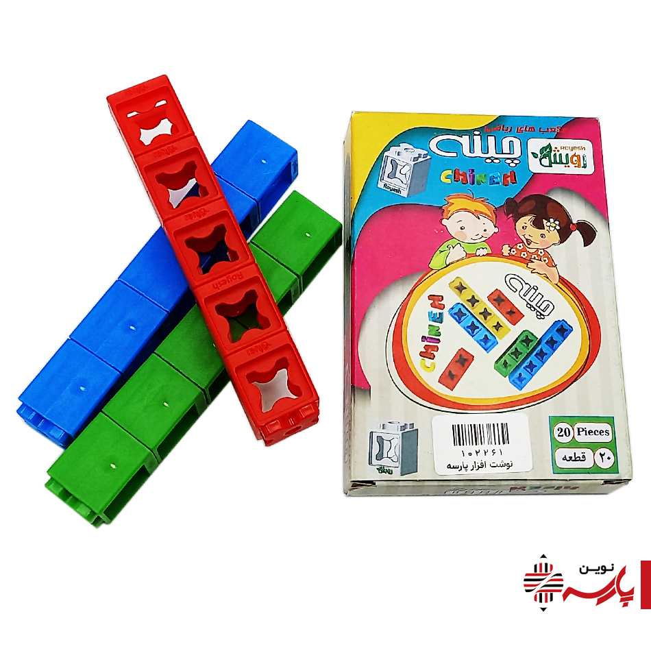 مکعب های چینه جهت درک مفهوم جمع، تفریق، ضرب و تقسیم میباشد. در کتاب ویرایش شده سال اول دبستان 1390 از مکعب های چینه به عنوان یکی از وسایل کمک آموزشی ریاضی نام برده شده است. چینه بهترین ابزار برای مفهوم اعداد، جمع، تفریق و تقسیم – ابزاری برای آموزش ریاضیات پایه ای می باشد. شما میتوانید با خرید چینه ی 20 عددی رویش از فروشگاه لوازم تحریر نوین پارسه این محصول را با بهترین قیمت تهیه میکنید.